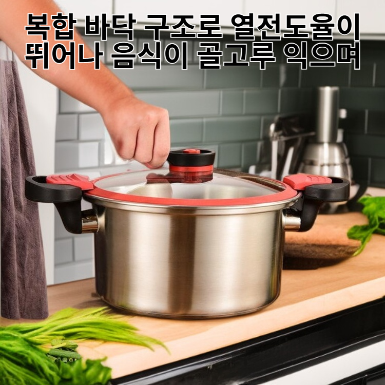 ● 복합 바닥 구조로 열전도율이 뛰어나 음식이 골고루 익으며, 에너지 절약 효과까지 기대할 수 있습니다.
